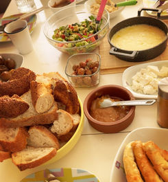 We’d love to welcome you into our home to cook, eat, and enjoy a real Turkish breakfast, just like friends and family do in Turkey. Together, we’ll prepare a spread of traditional dishes, including sizzling Menemen (eggs with tomatoes and peppers), Muhlama (a rich, cheesy dish from the Black Sea), and eggs with Sucuk (spiced Turkish sausage). Alongside these, we’ll enjoy fresh cheeses, olives, homemade jams, honey with Kaymak (Turkish clotted cream), and warm, sesame-crusted Simit; all while sharing stories, sipping tea, and soaking in the warmth of Turkish home hospitality. 💌